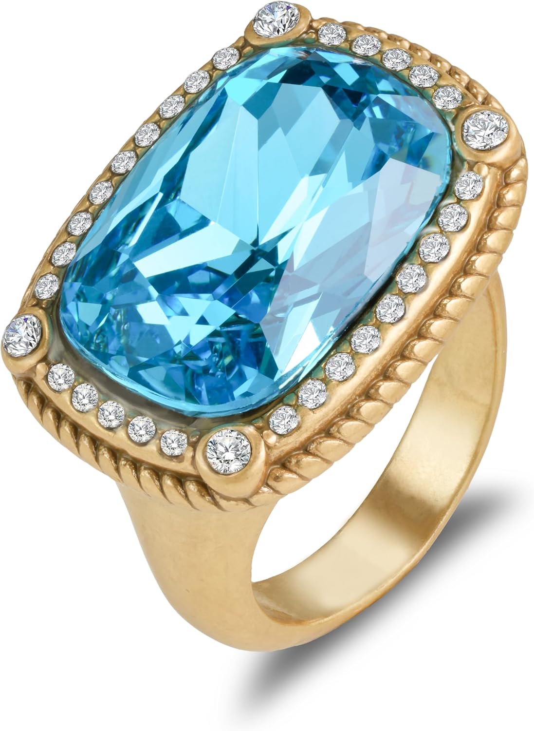 Vintage Gold Plated Ring with Blue Zircon Adjustable Antique Statement Jewelry for Women Size 8-9