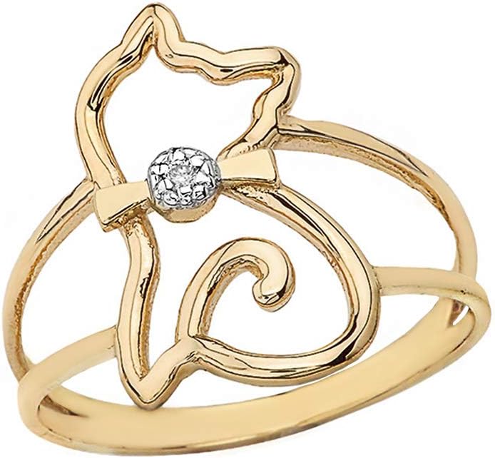 Unique Women's 14k Gold Split Shank Band Diamond Openwork Cat with Bow Tie Ring