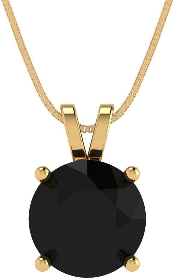 Clara Pucci 14K Yellow Gold Plated Solitaire 16" Box-Chain Necklace - Sterling Silver 3ct Round Cut Onyx Pendant