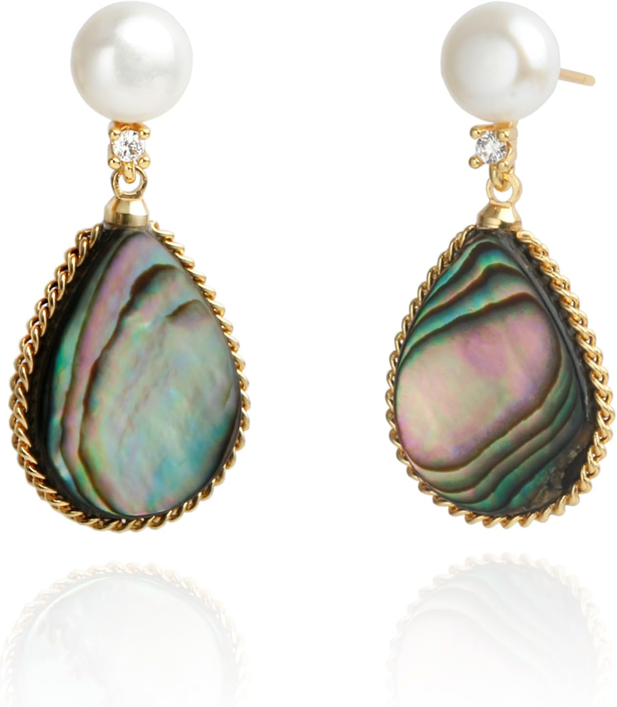 Handmade Teardrop Shell Dangle Earrings for Women, Pearls Sterling Silver Posts