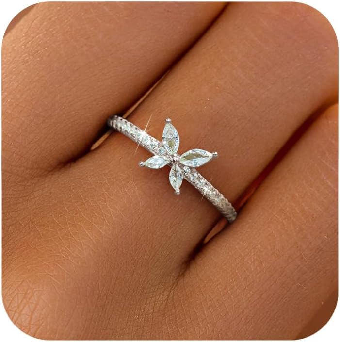 LOVECOM 925 Sterling Silver Cute Butterfly Rings for Women Dainty 14k Gold Plated CZ Rhinestone Insect Stacking Promise Ring Mother Daughter Ring Jewelry Birthday Gifts for Friends