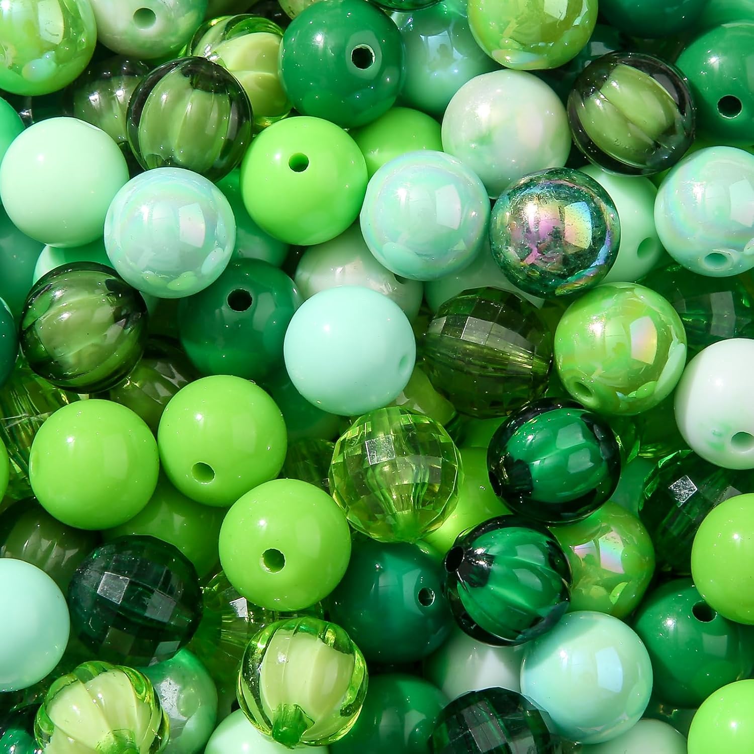 16mm Acrylic Beads 100pcs Green Focal Spacer Bead Chunk Bubblegum Beads for DIY Crafting Necklace Bracelet Jewelry Making Keychain (Green)