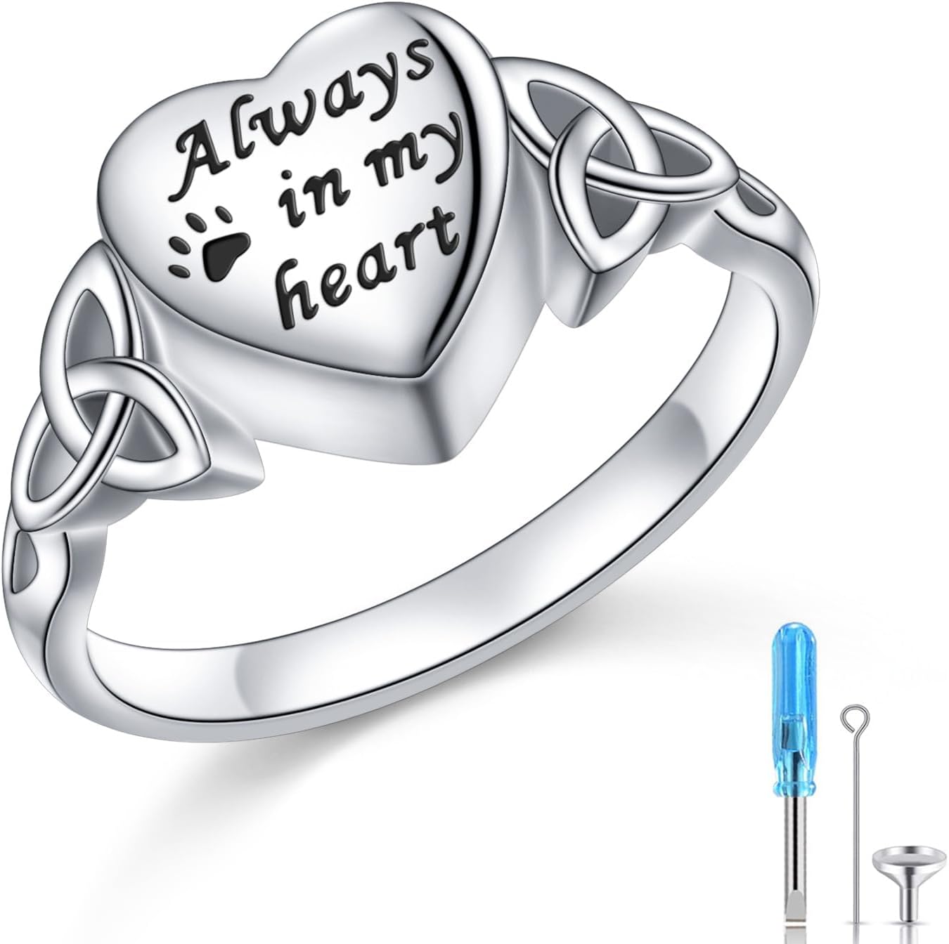925 Sterling Silver Pet Paw/Oxidation Tree of Life Urn Rings for Women Engraved Always In My Heart Cremation Keepsake Jewelry for Ashes Heart-shape Celtic Knot Ring Easter