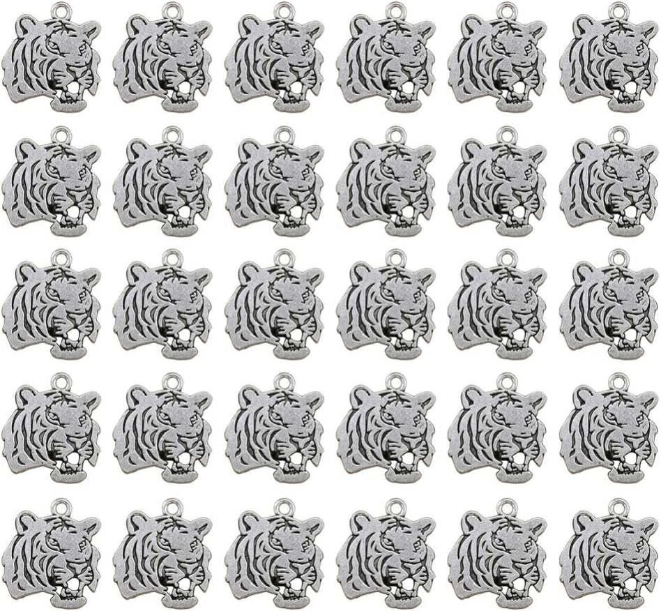 SUPVOX 30pcs Tiger Head Charm DIY Pendant Jewelry Making Accessories for Necklace Bracelet Crafts