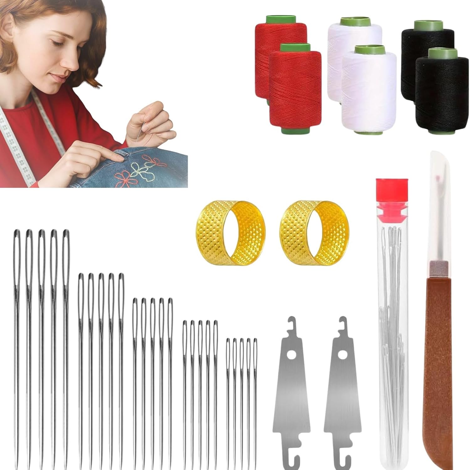 - All-in-One Sewing Kit—This hand sewing needle sewing tool set includes everything you need for repairs, embroidery, and detailed stitching.whether you’re mending a tear, finishing a craft, or stitching leather, this compact kit is ready for anything.
