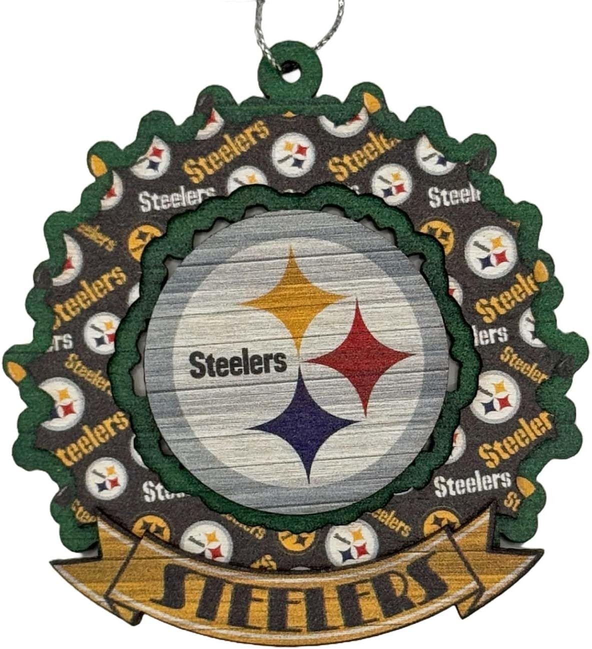 FOCO Pittsburgh Steelers Wooden Wreath Mural Holiday Ornament