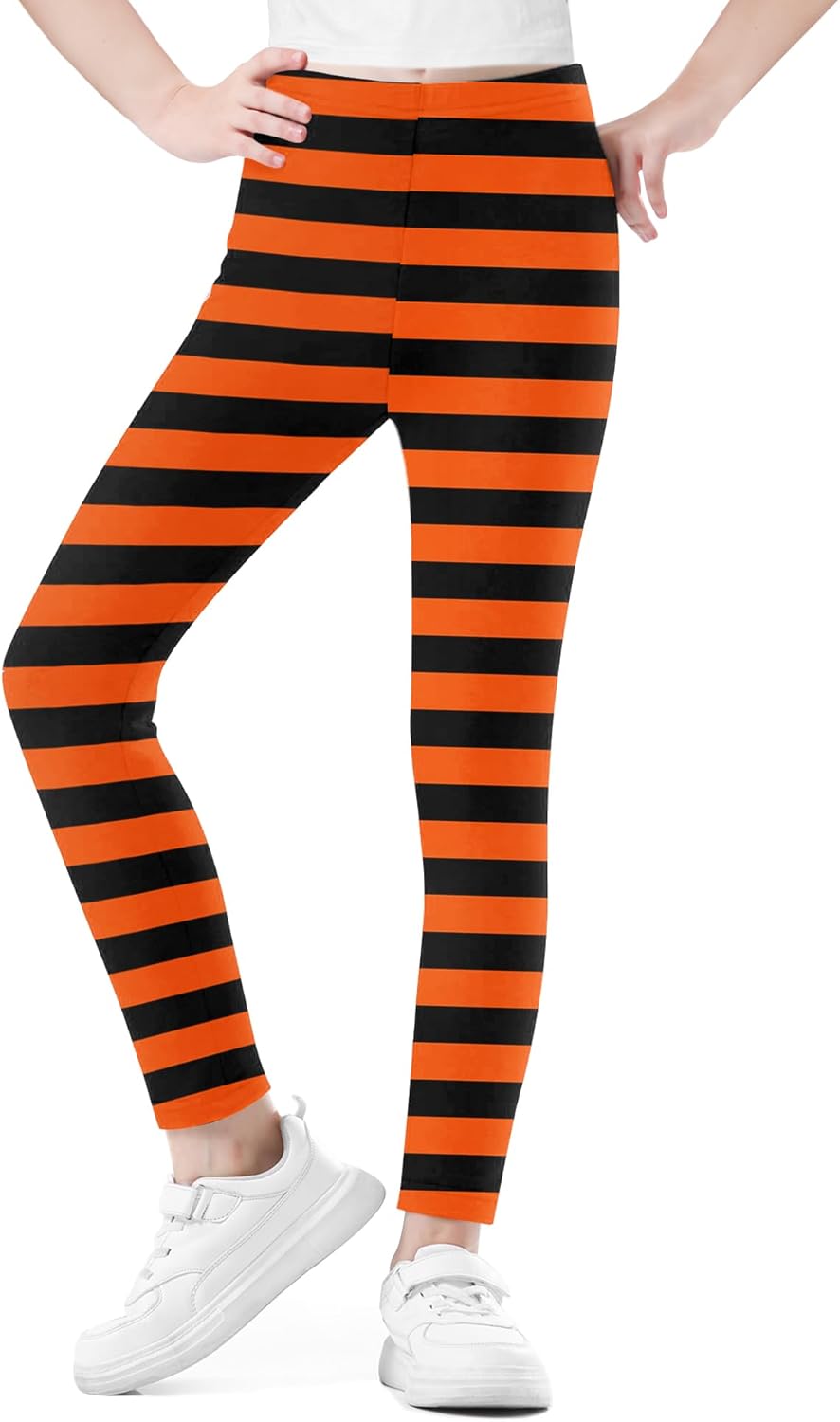 Girls Halloween Party Skinny Leggings Cute Printed Tights Orange & Black Stipes 11-12 Years