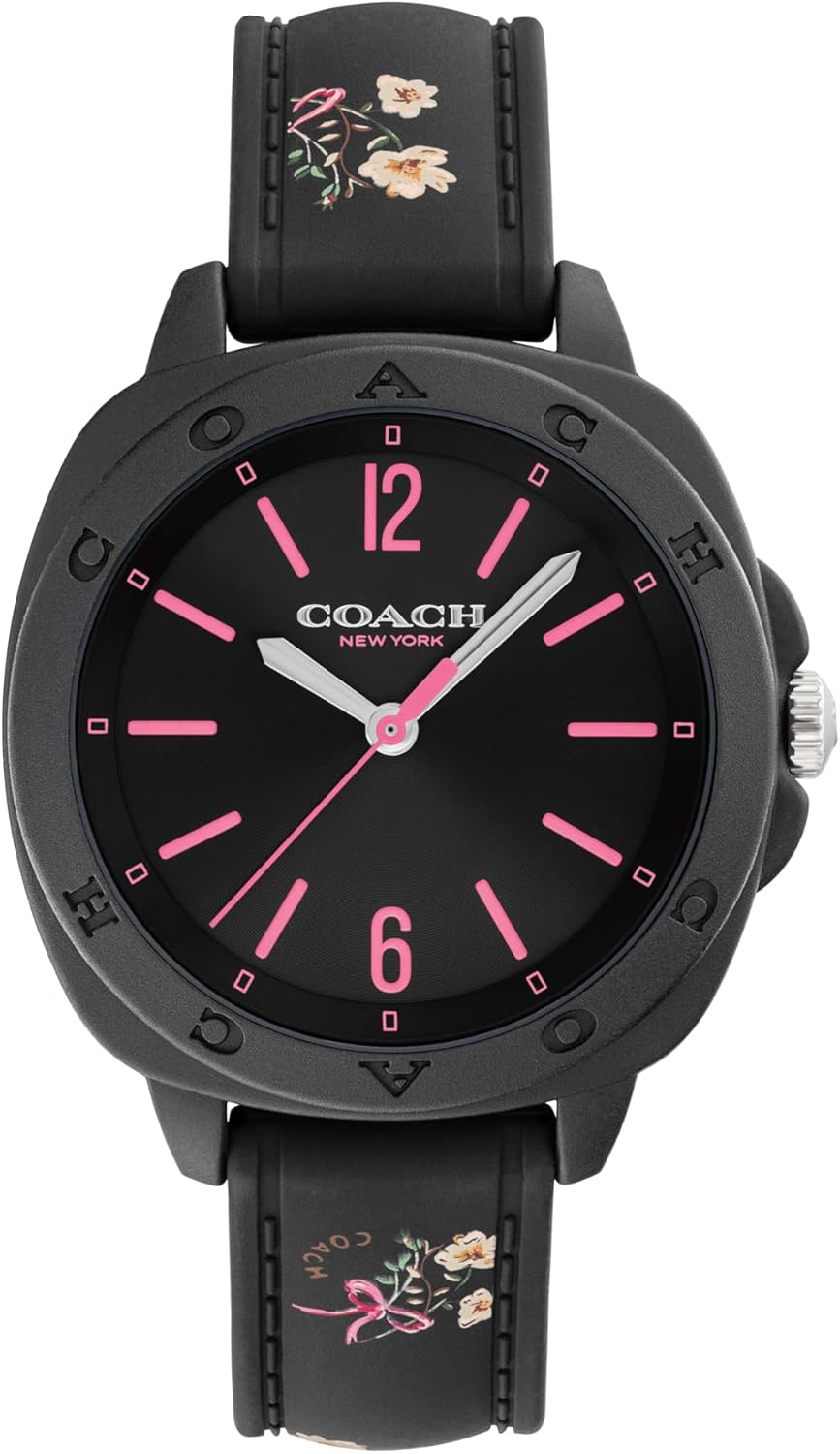 Coach Kitt Women's 3H Quartz Watch – 35 mm TR90 Case – Silicone Strap – Stylish Fashion Accessory, Gift for Her