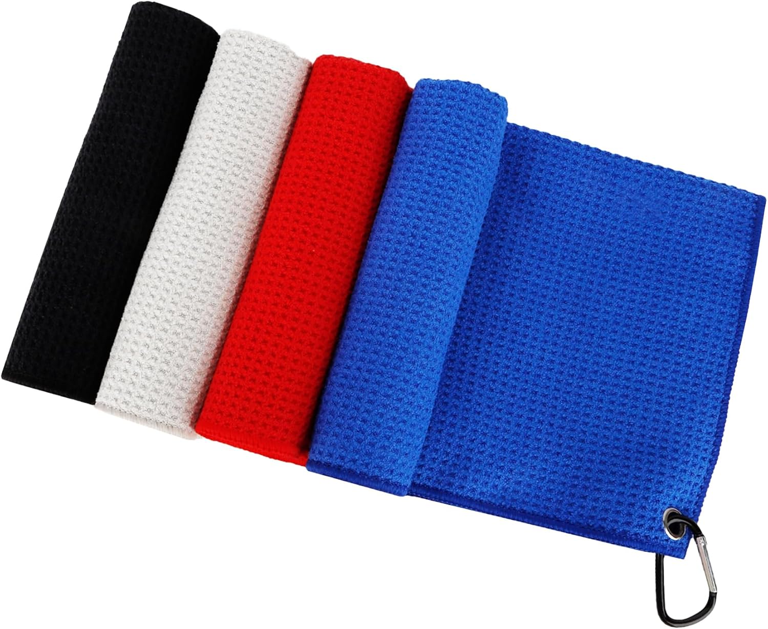 - Package: You will receive 4 pcs microfibre golf towels in red, black, grey, royal blue, one for each colour, size is 16" x 16"