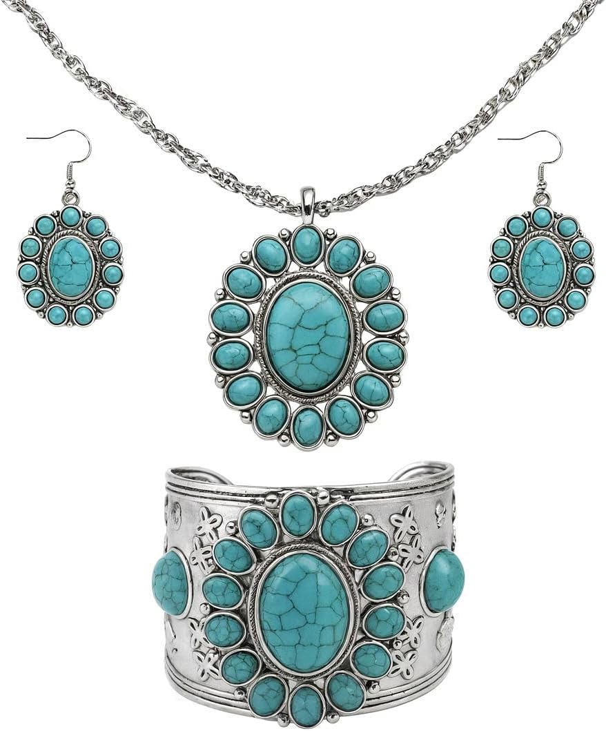 Howlite Jewelry Sets for Women - Turquoise Inspired Western Cowgirl Accessories - Statement Summer Beach Boho Necklace Earrings & Cuff Bracelet Set - Costume Jewelry Anniversary Valentines Day Gifts
