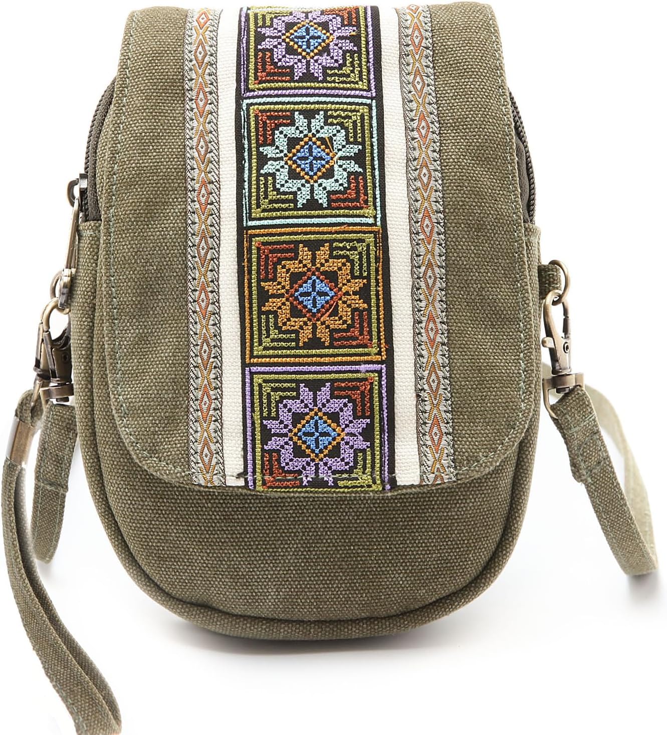 Goodhan Embroidery Canvas Crossbody Bag Cell phone Pouch Coin Purse for Women