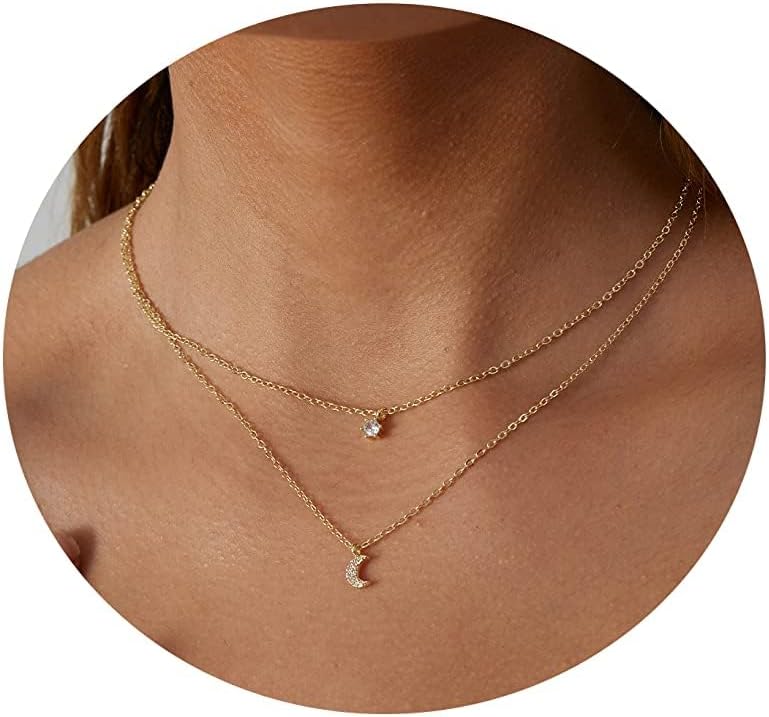 14k Gold/Silver Plated Crescent Moon Necklace Tiny Moon and Star NecklaceDainty Sun Leaf Necklace Gold Pendant Necklace for Women Delicate Minimalist Jewelry