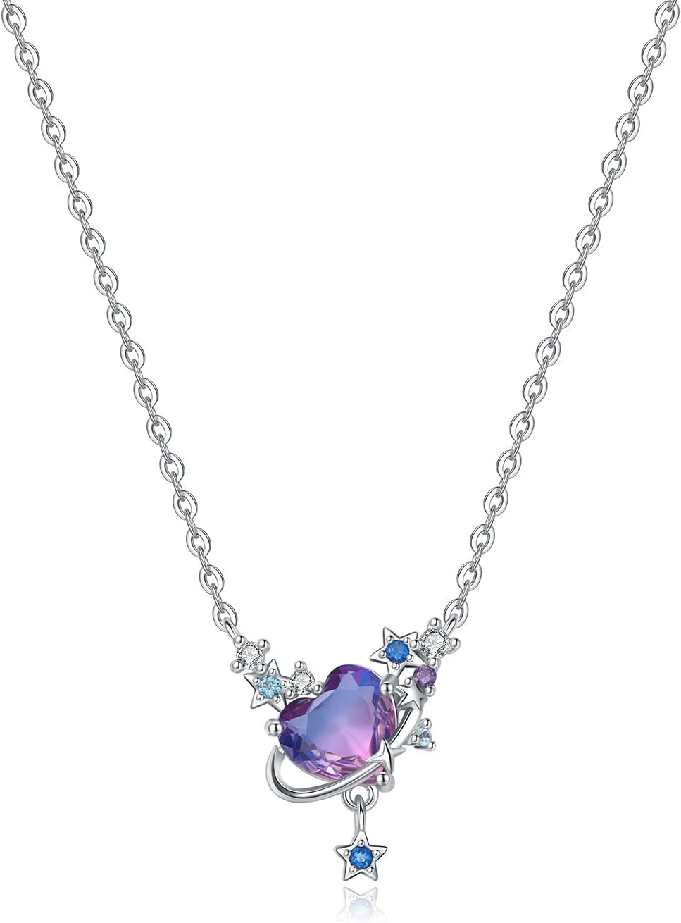 925 Sterling Silver Necklace for Women,Dainty Purple Love Planet Pendant Necklace, Galaxy Solar System Jewelry Gift for Her Valentine's Day, Adjustable 16-18in Chain,Basic Multifunctional Accessories Suitable for Multiple Occasions and Daily Wear