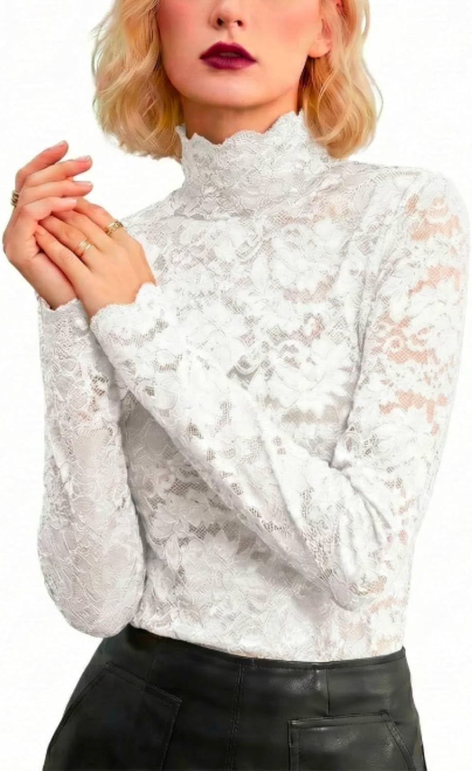 Women's Floral Lace Top Long Sleeve Mock See Through Mesh Underwear Blouse Shirt S-L