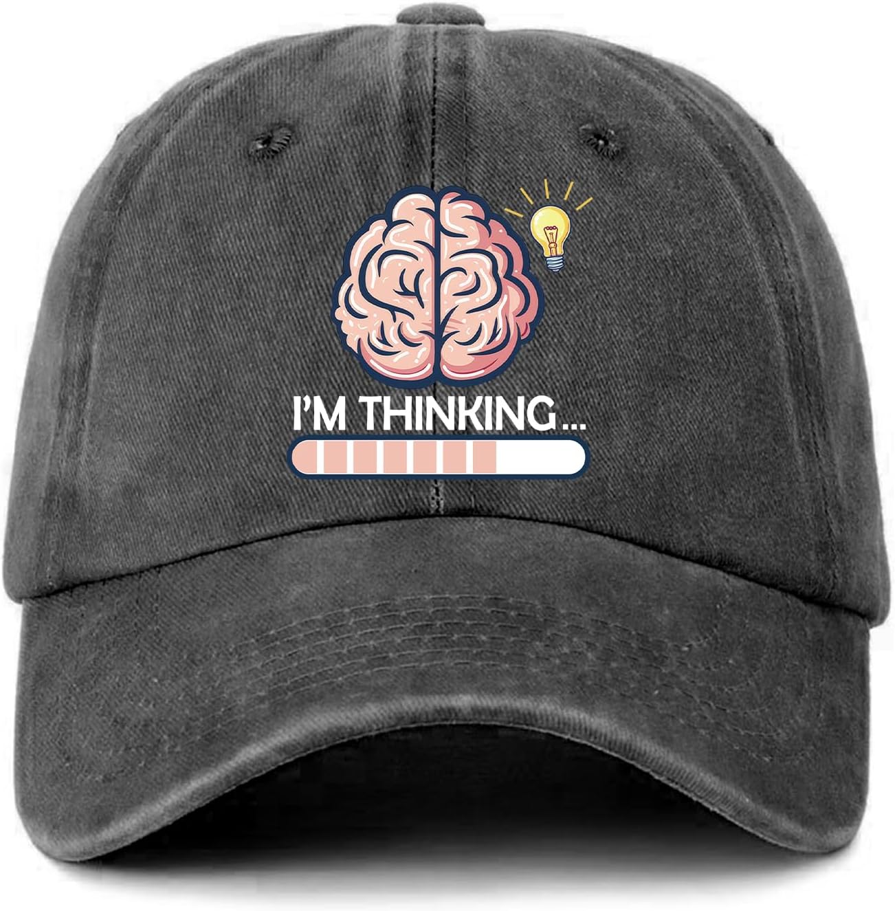 Funny Brain Distressed Washed Black Baseball Caps I'm Thinking Printed Baseball Hats Classic Cotton Adjustable Trucker Hat for Men Women Trendy Birthday Gifts for Dad Mom Family Friend