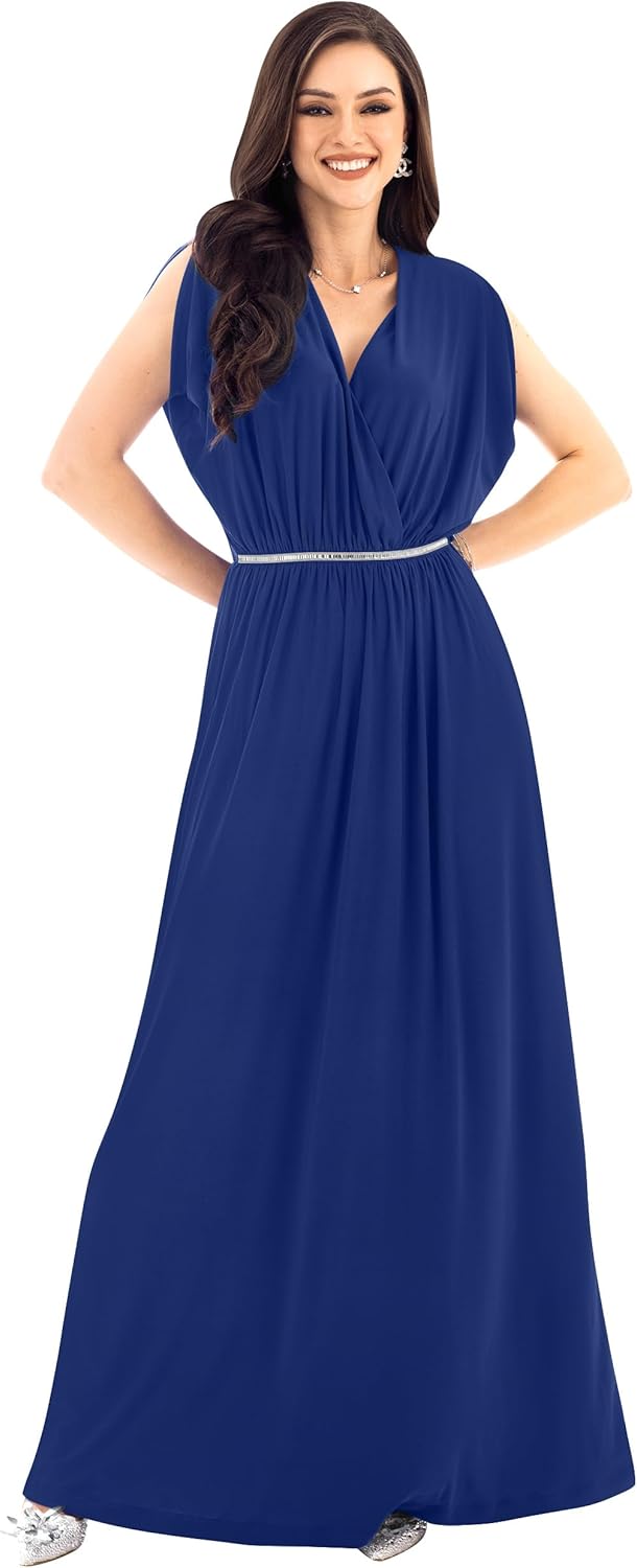 KOH KOH Womens Long Dolman Sleeve Wrap V-Neck Maternity Bridesmaid Maxi Dress
