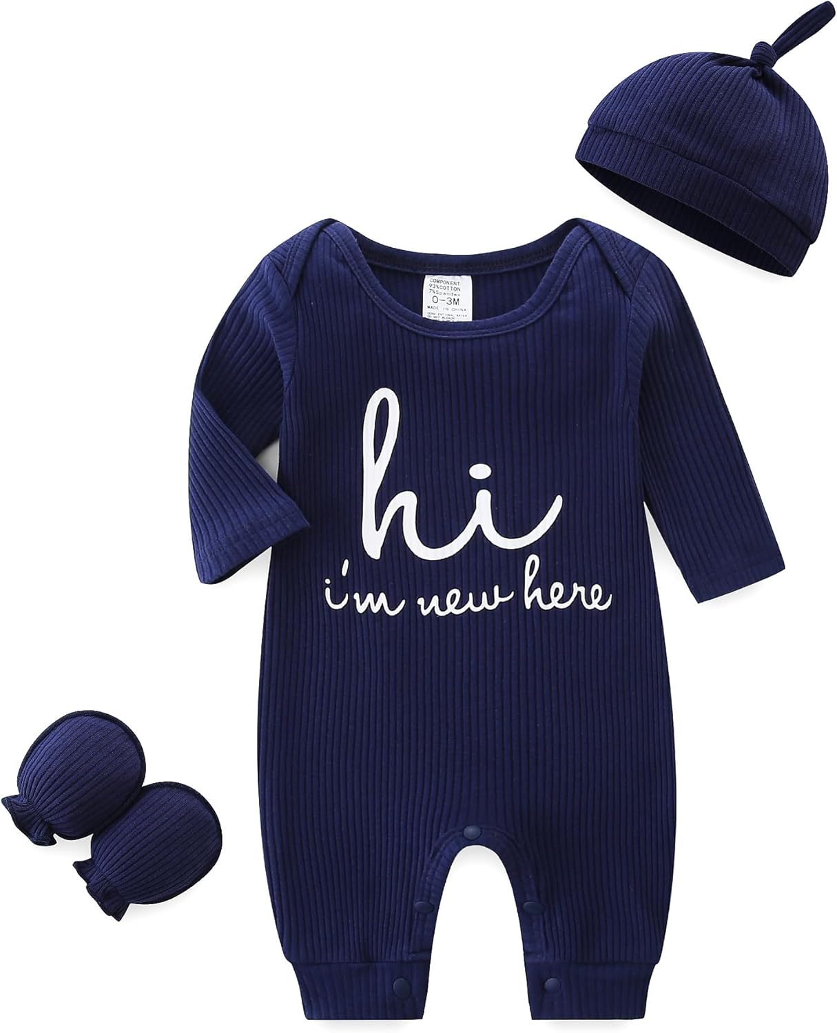 Newborn Unisex Baby Clothes 0-3 Months,Long Sleeve Onesie Infant Coming Home Outfits Romper with Mittens & Hat