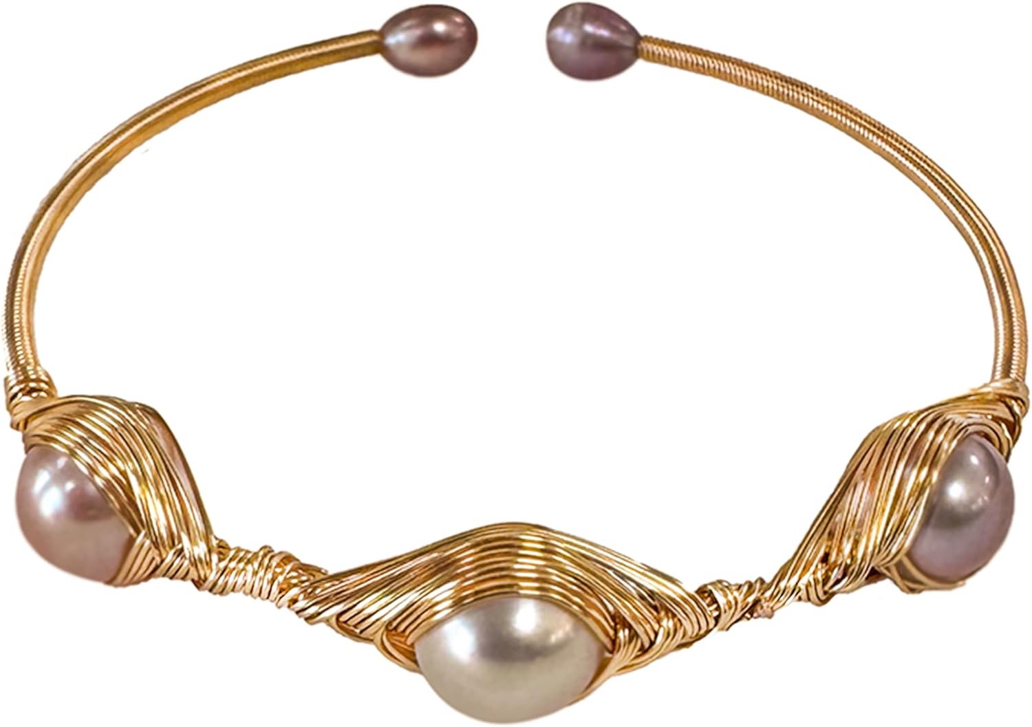 Women's Pearl Bracelet Cultured Pearls - Handmade Copper Wire Weaving with Freshwater Cultured Pearls Handcrafted Baroque Pearl Bracelet with Gold and Silver Wires