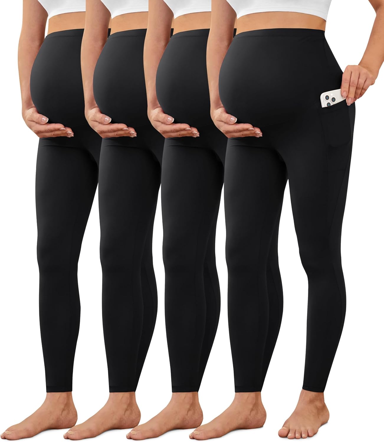 VALANDY Creamlush 4 Pack Maternity Leggings with Pockets Over The Belly-Buttery Soft Yoga Workout Pregnant Pants