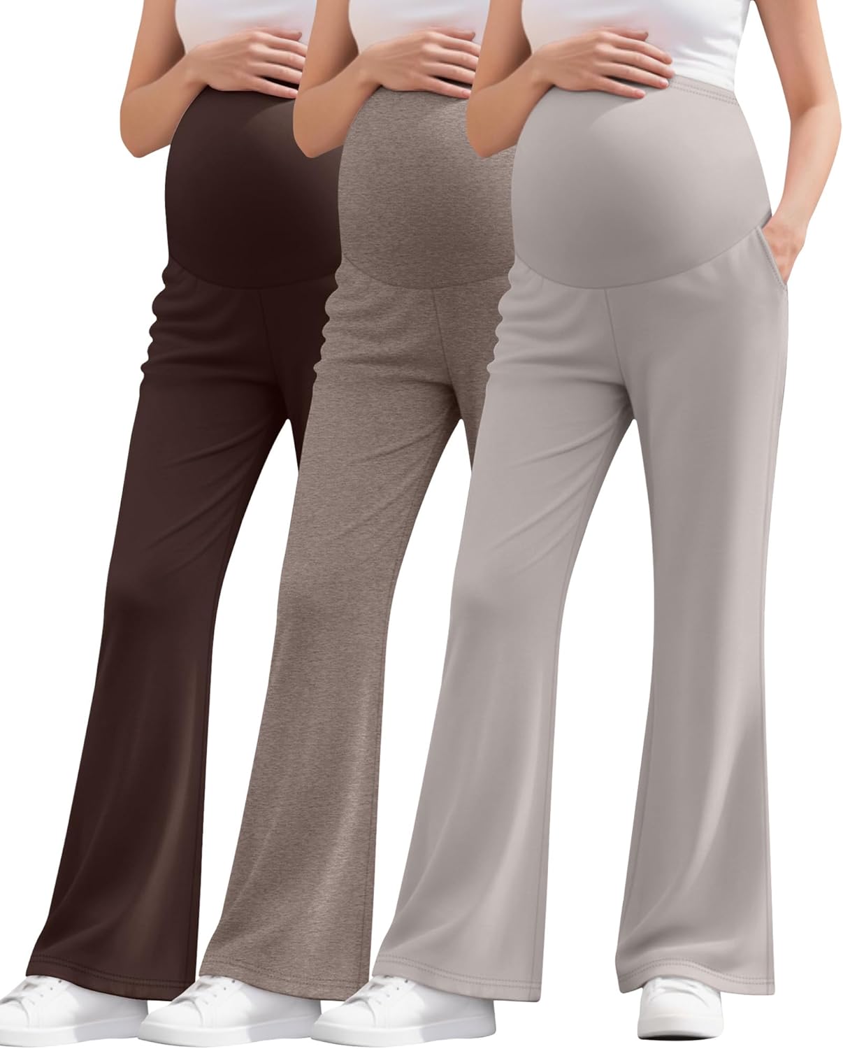 3 Pack Women's Maternity Pants Over The Belly Stretchy Pregnancy Sweatpants Bootcut Pregnancy Trousers with Pocket