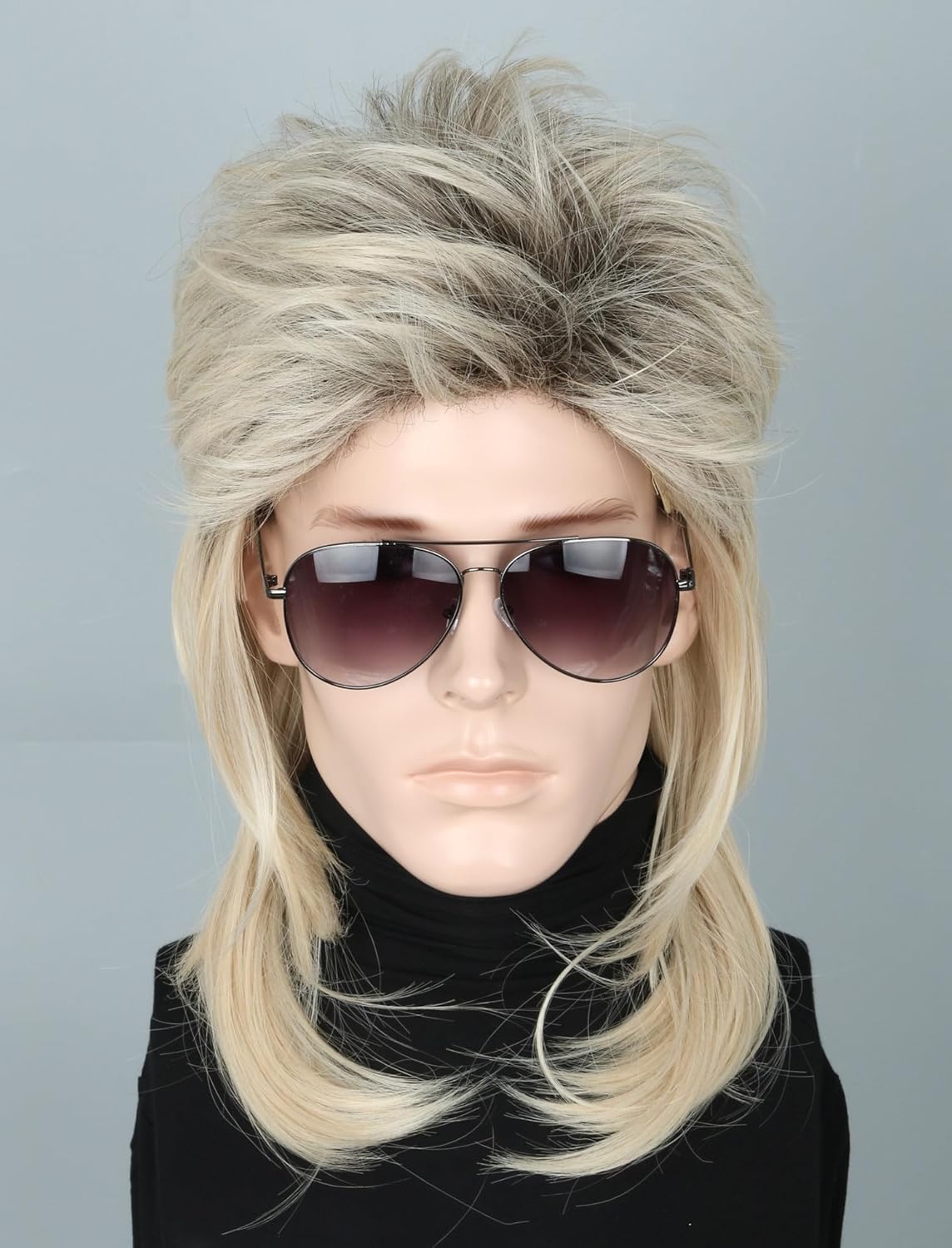 - AUTHENTIC STYLE: Premium synthetic fiber wig featuring iconic 70s-80s mullet hairstyle with blonde color and black highlights for realistic appearance.