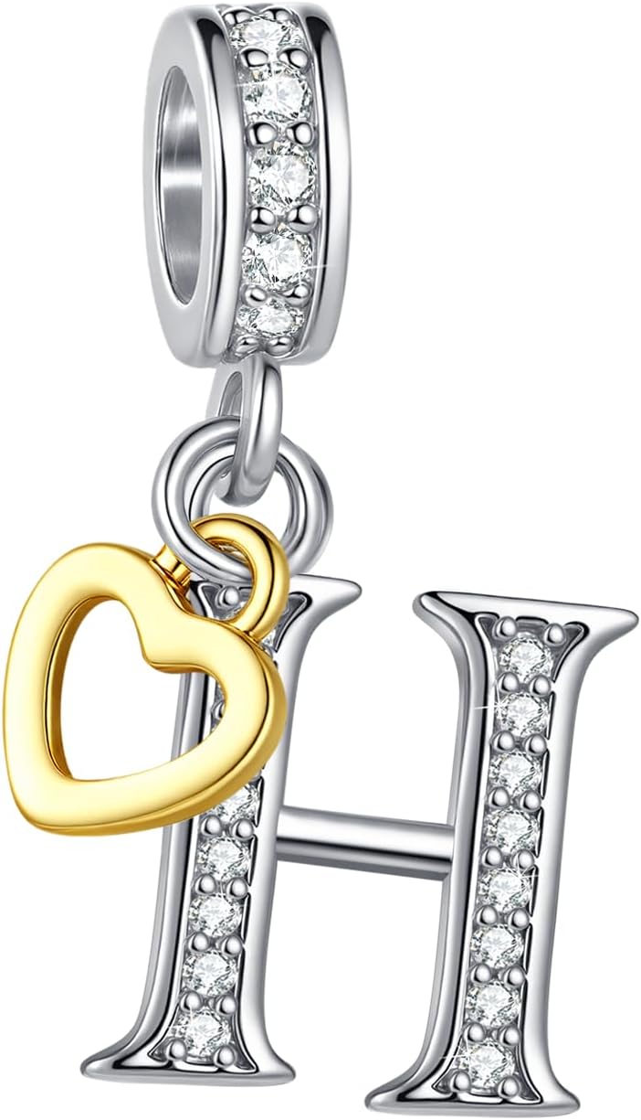 Gold Heart A to Z Initial Letter Dangle Charm fits Pandora Charms Bracelets for Women Alphabet Pendant Name Necklace Personalized Gift Clear Cubic Zirconia