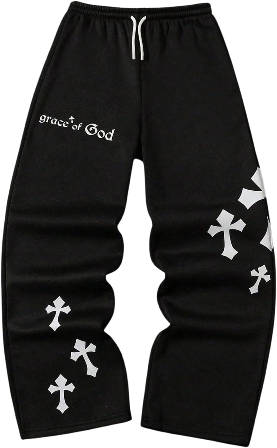 Boy's Cross Graphic Sweatpants Drawstring Waisted Trousers Wide Leg Athletic Pants