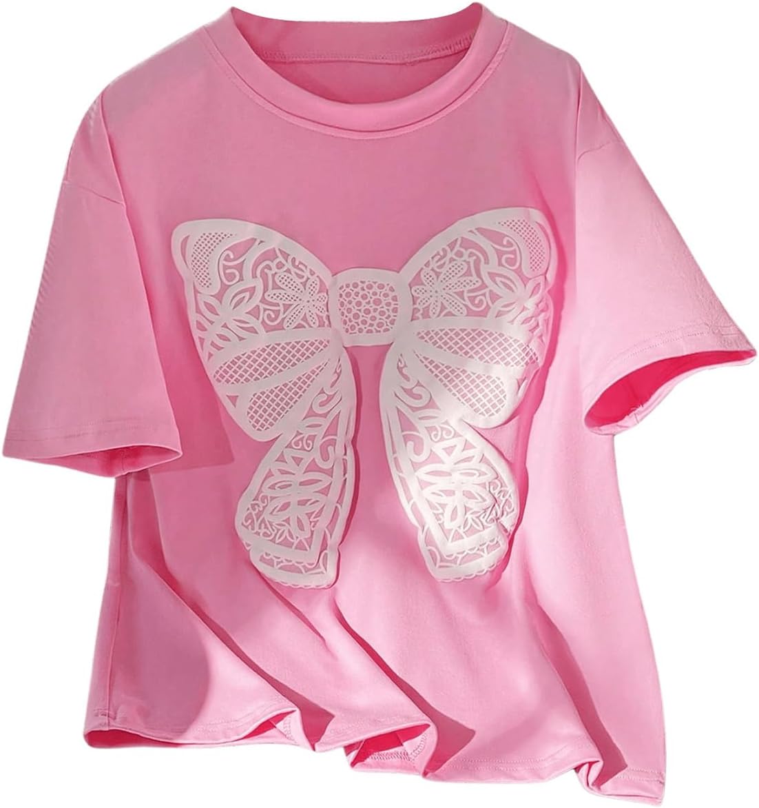 SweatyRocks Girl's Cute Bow Tee Shirt Short Sleeve Crew Neck Summer Top