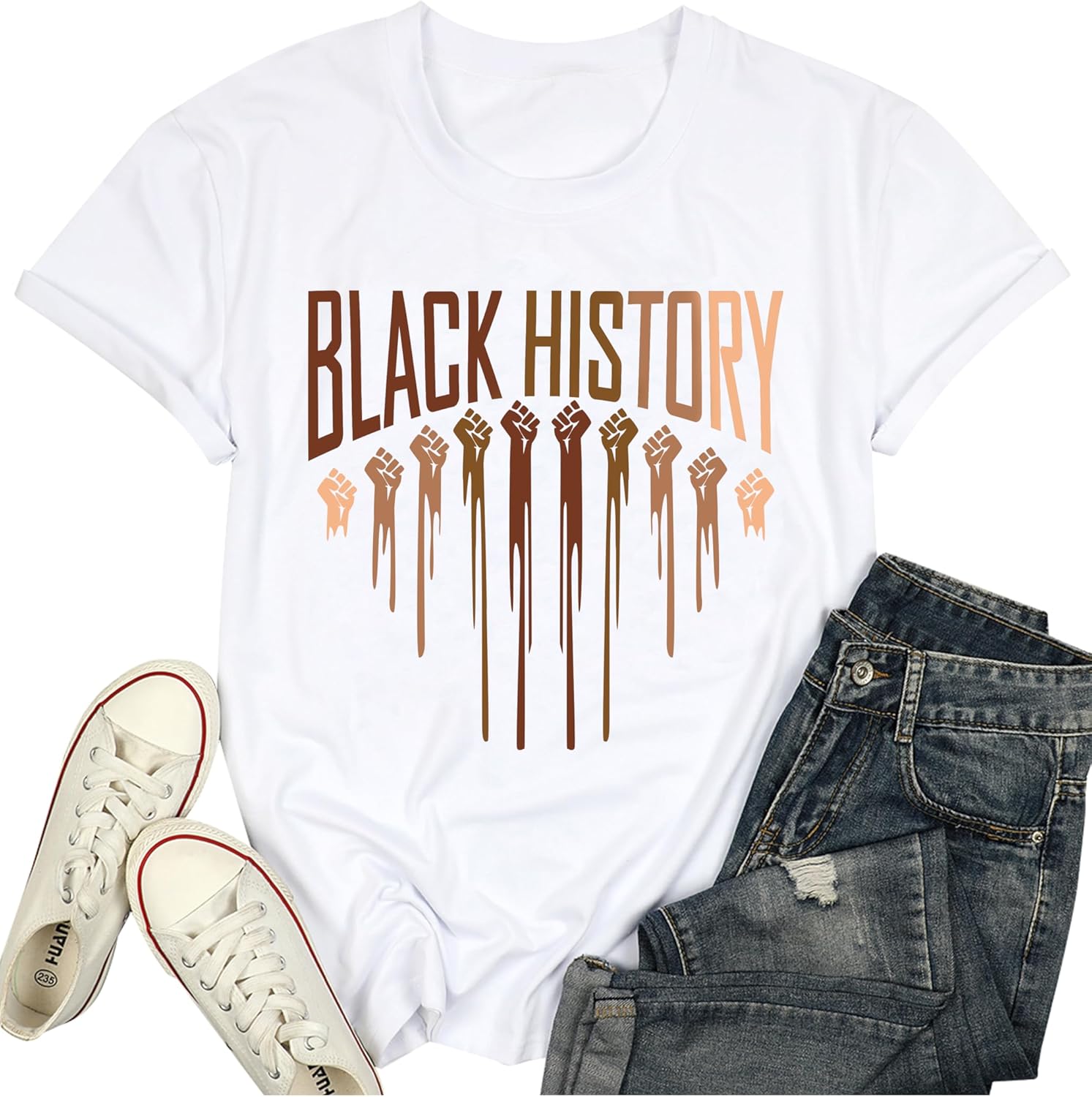 Women Black History Shirts Melanin Shirts for Black Women American African Black Pride Graphic Tee Tops