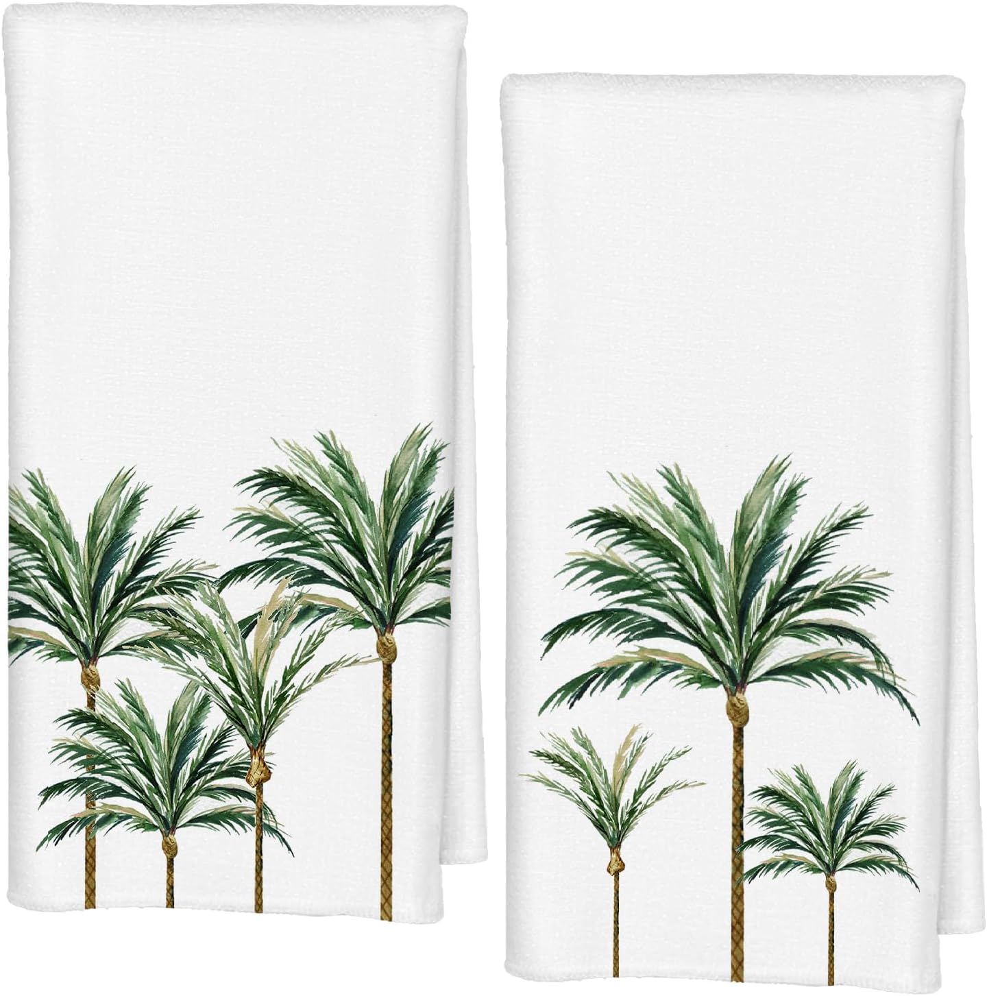 Tropical Palm Tree Bathroom Decor Hand Towels, Tropical Bathroom Decor, Summer Coastal Plant Dish Tea Towels for Kitchen Decor, Beachy Botanical Decorative Hand Towels, 16x24 Inch Set of Two