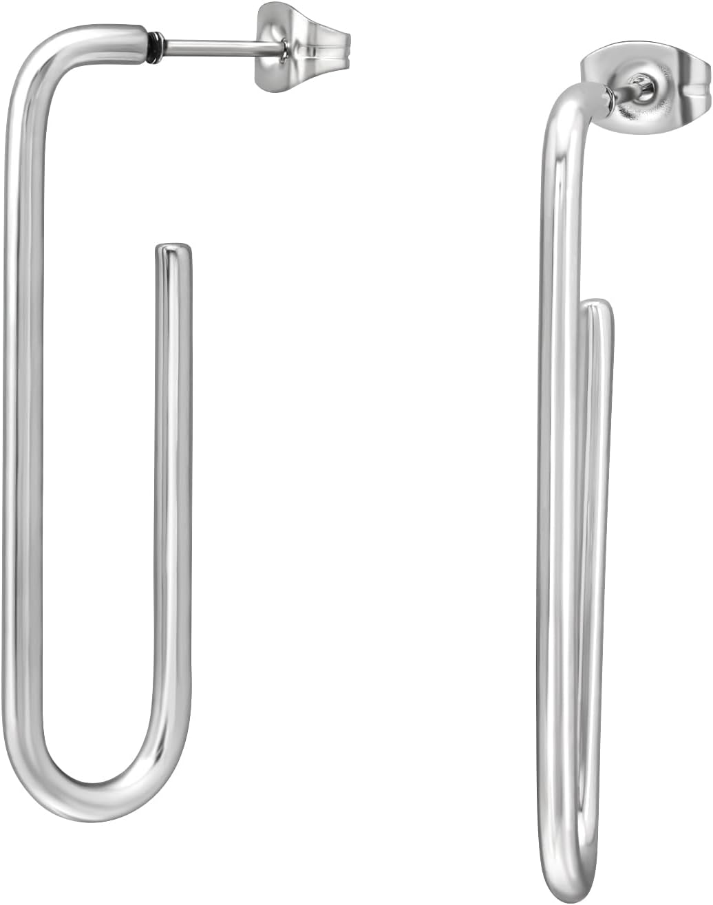 Stainless Steel Oval Shaped Hoop Earrings, Sold as a Pair