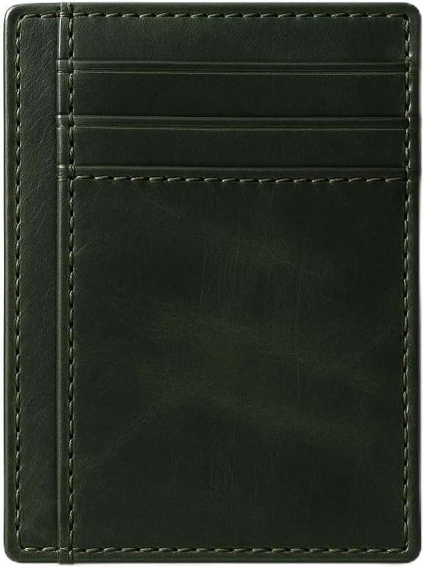 Slim Leather Wallet for Men & Women – Minimalist Front Pocket Card Holder, Small Money Clip Wallet, Genuine Leather Credit Card Case (Green)