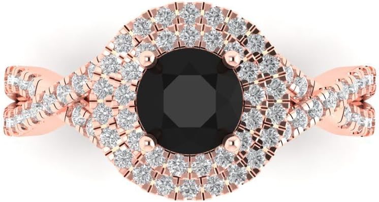 Clara Pucci 1.3125 cttw Onyx 14K Rose Gold Solitaire with Accents Ring for Women - Cocktail Statement Fashion Jewelry Gift (6mm, Round Cut)