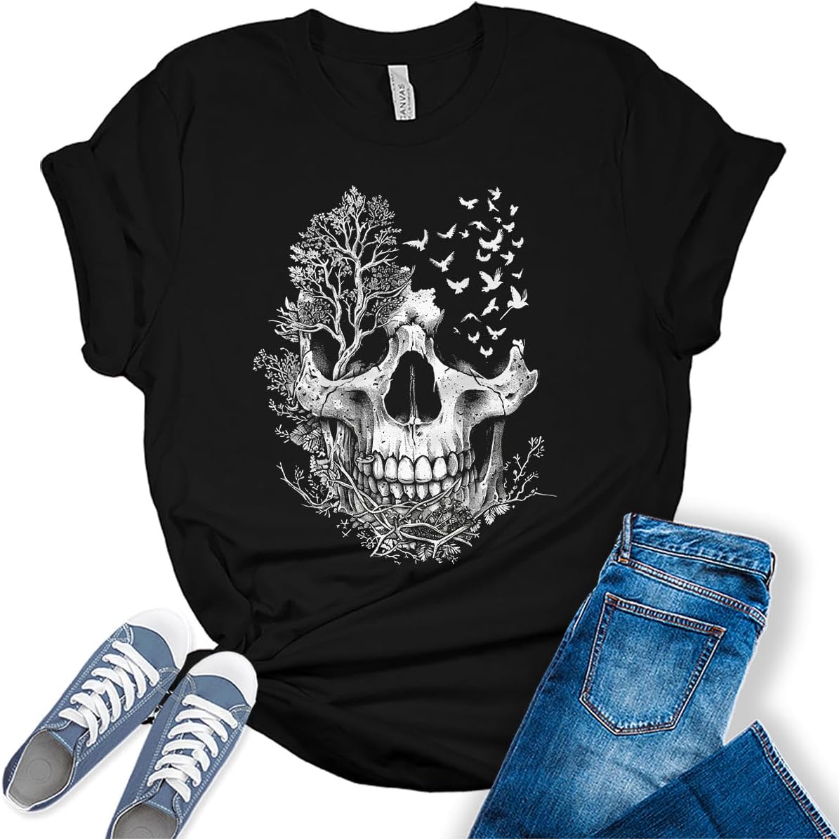 Skull Shirts for Women Skeleton Funny Gothic Graphic T-Shirts Novelty Horror Halloween Tee Shirts