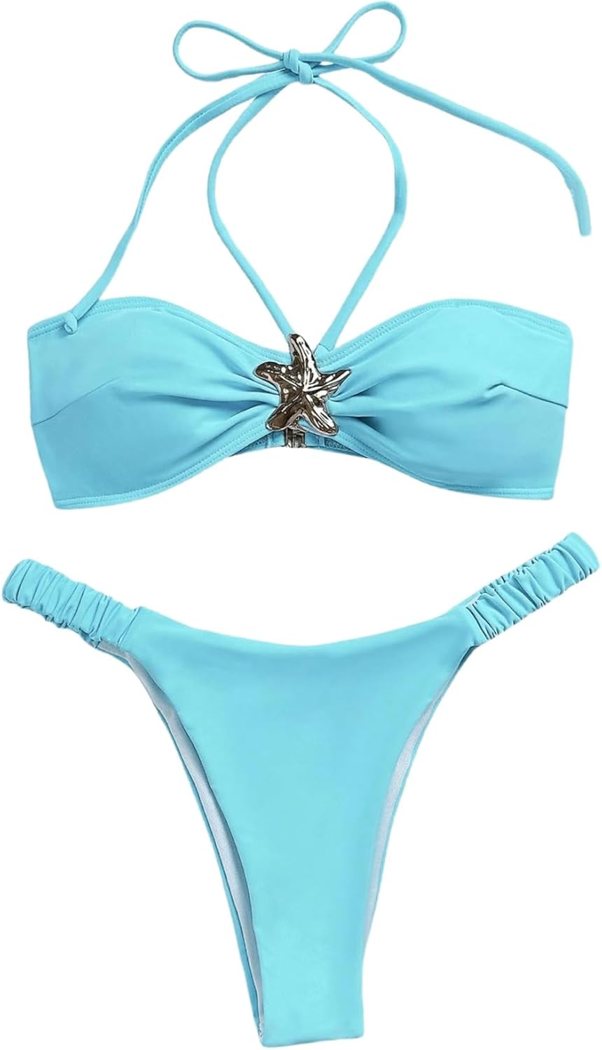 WDIRARA Women's 2 Piece Halter Bikini Sets Sexy Starfish Brazilian Metal Swimsuit