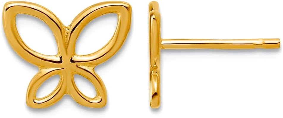 14k Solid Yellow Gold Polished Butterfly Angel Wings Post Earrings 8.55x5.14mm Wide Stud Earring for Women