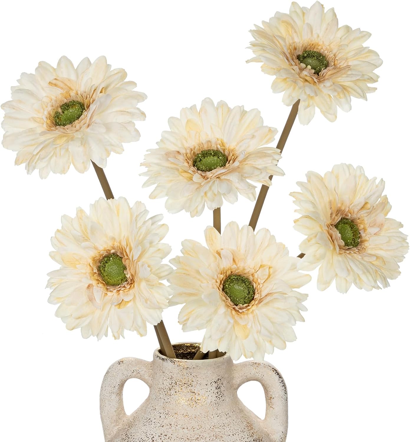 Briful Realistic Fake Flowers Bulk – 6pcs Gerbera Daisy Artificial Flowers Bouquet, Spring Summer Faux Flowers Indoor for Vase Filler, Wedding Centerpieces, Home & Outdoor Decor, Beige