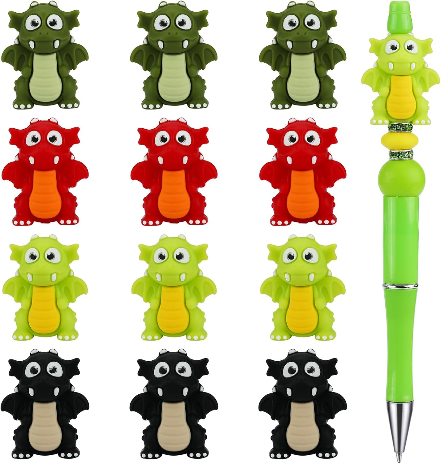 - Package Includes: You will get 12 Pcs 3D dragon cartoon silicone focal beads in 4 colors(3pcs/color). Size: 30x25x19mm with a 2mm hole
