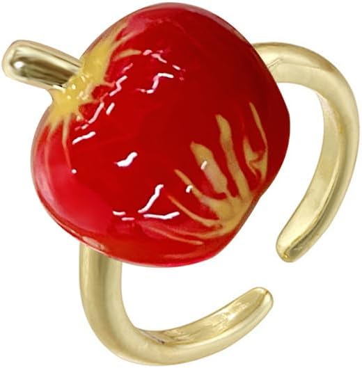 Cute Red Apple Enamel Adjustable Open Ring for Women Gold Plated Dainty Sweet Fruit Statement Stackable Finger Band Rings Comfotr Fit Fashion Jewelry