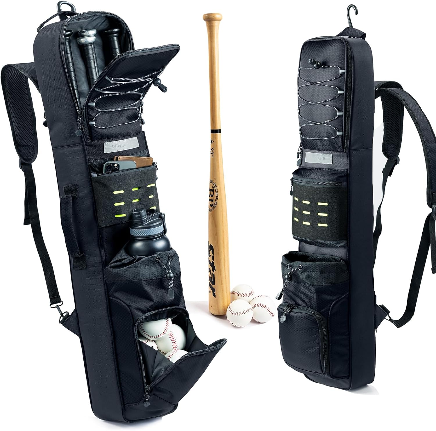 - ✔ MULTI-POCKET ORGANIZATION FOR GAME DAY: Includes front bungee cord for gloves or gear, zippered ball pocket for baseballs, accessory pocket for phone & keys, and a side bottle pocket. Keeps all baseball essentials organized in one compact bat bag.