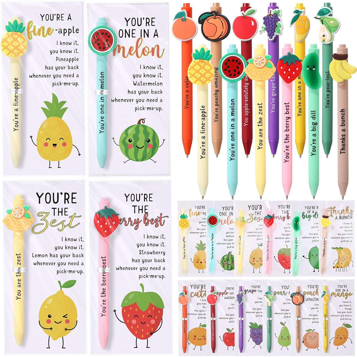 - Inspirational Design: our employee appreciation pens and matching fruit theme postcards feature 12 humorous sayings like [You're a cutie], [You're peachy amazing] and [You're one in a mango]; This creative design aims to deliver positive affirmations and bring smiles to coworkers, teachers, or friends