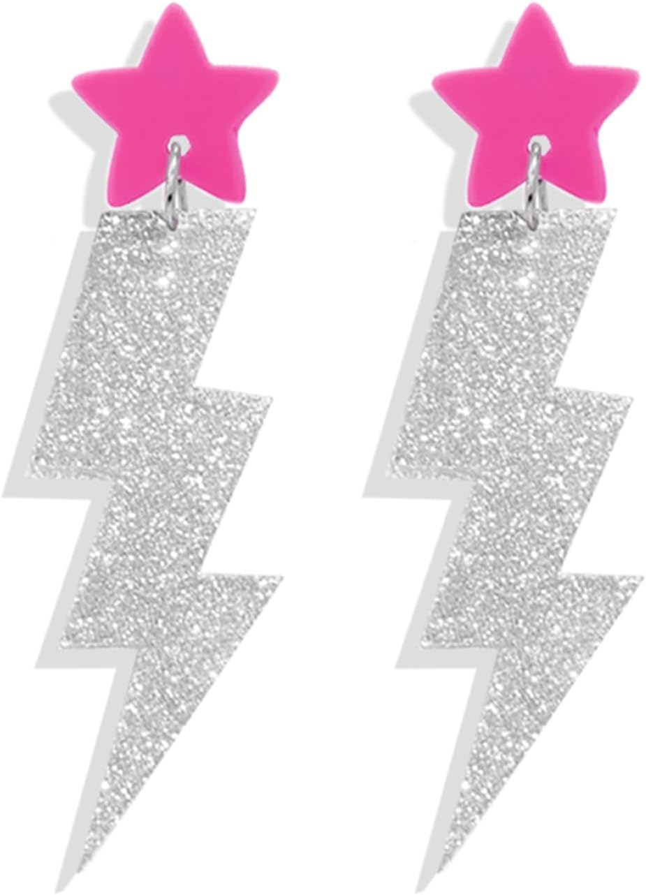 WCRAZYE 80s Retro Neon Earrings Lightning Bolt Dangle Earrings for Women Punk 80s 90s Neon Thunder Flash Lightning Drop Earring 80's Retro Costume Accessory