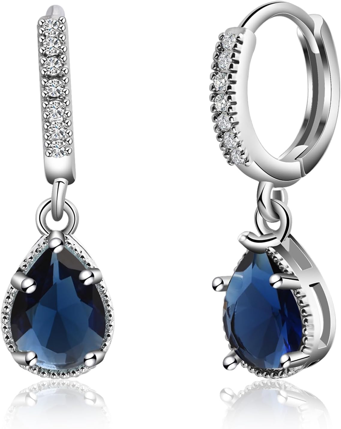 Teardrop Zircon Hoop Earrings Sterling Silver Drop Dangle Earrings for Women