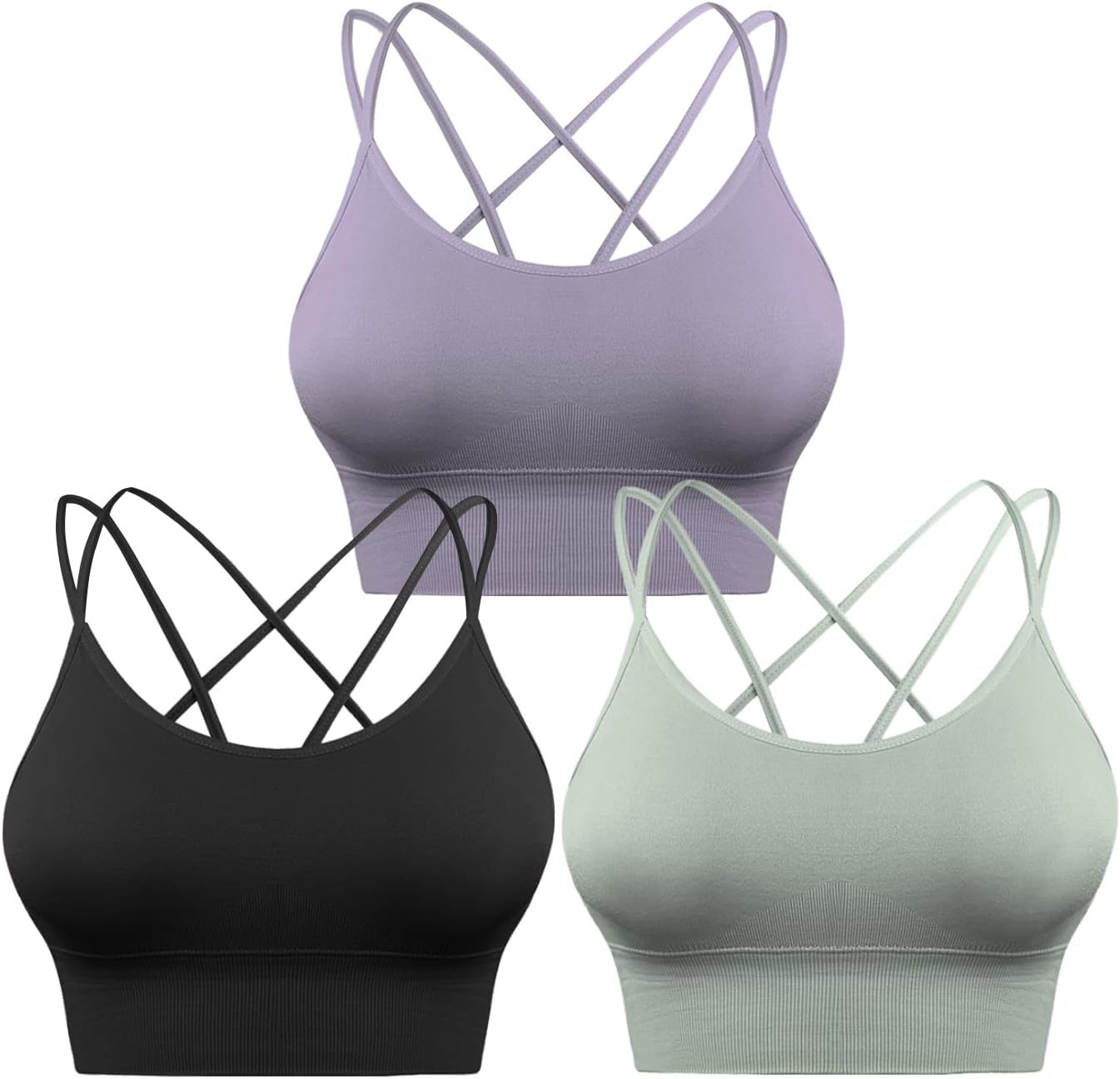 Sykooria 3 Pack Strappy Sports Bra for Women Sexy Crisscross for Yoga Running Athletic Gym Workout Fitness Tank Tops