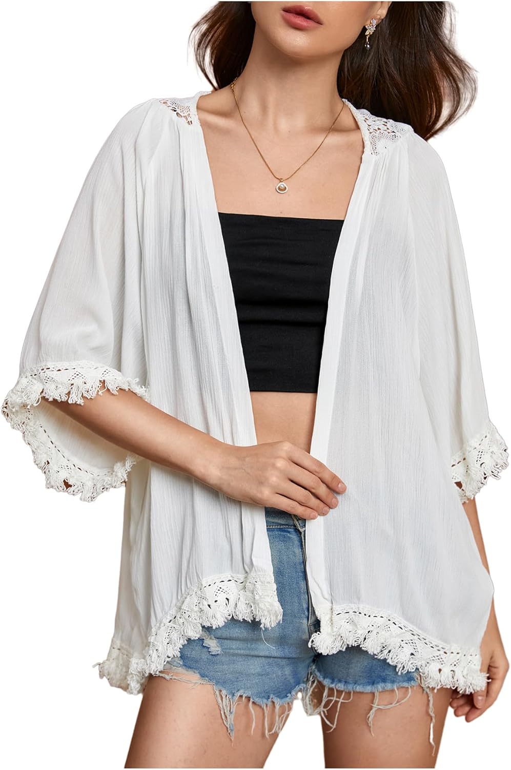 SweatyRocks Women's Tassel Kimono Fringe Cardigan Beachwear Cover up