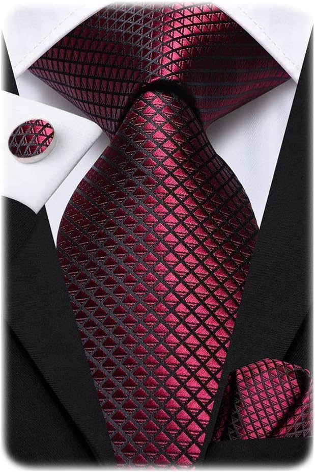 Hi-Tie Mens Plaid Ties Classic Paisley Necktie with Handkerchief Cufflinks Set Business Stripe Tie