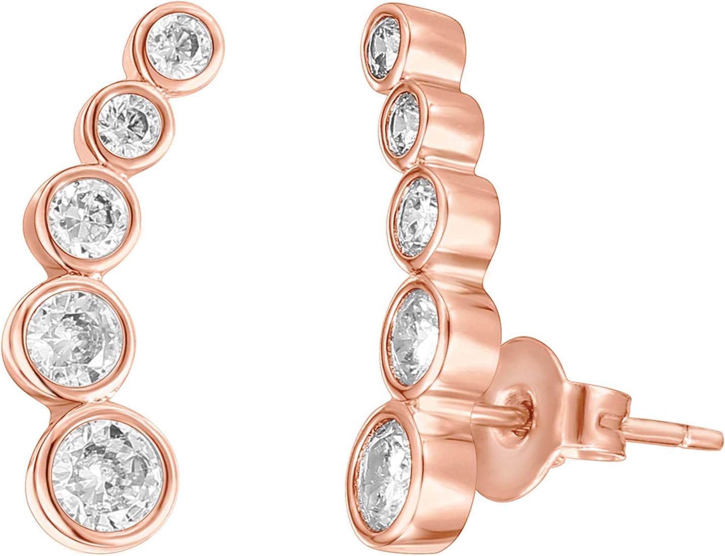 PAVOI 14K Gold Plated Sterling Silver Post Cubic Zirconia Ear Crawler Earrings - Tiny Faux Diamond Sterling Silver Post Ear Climber Fashion Earrings for Women