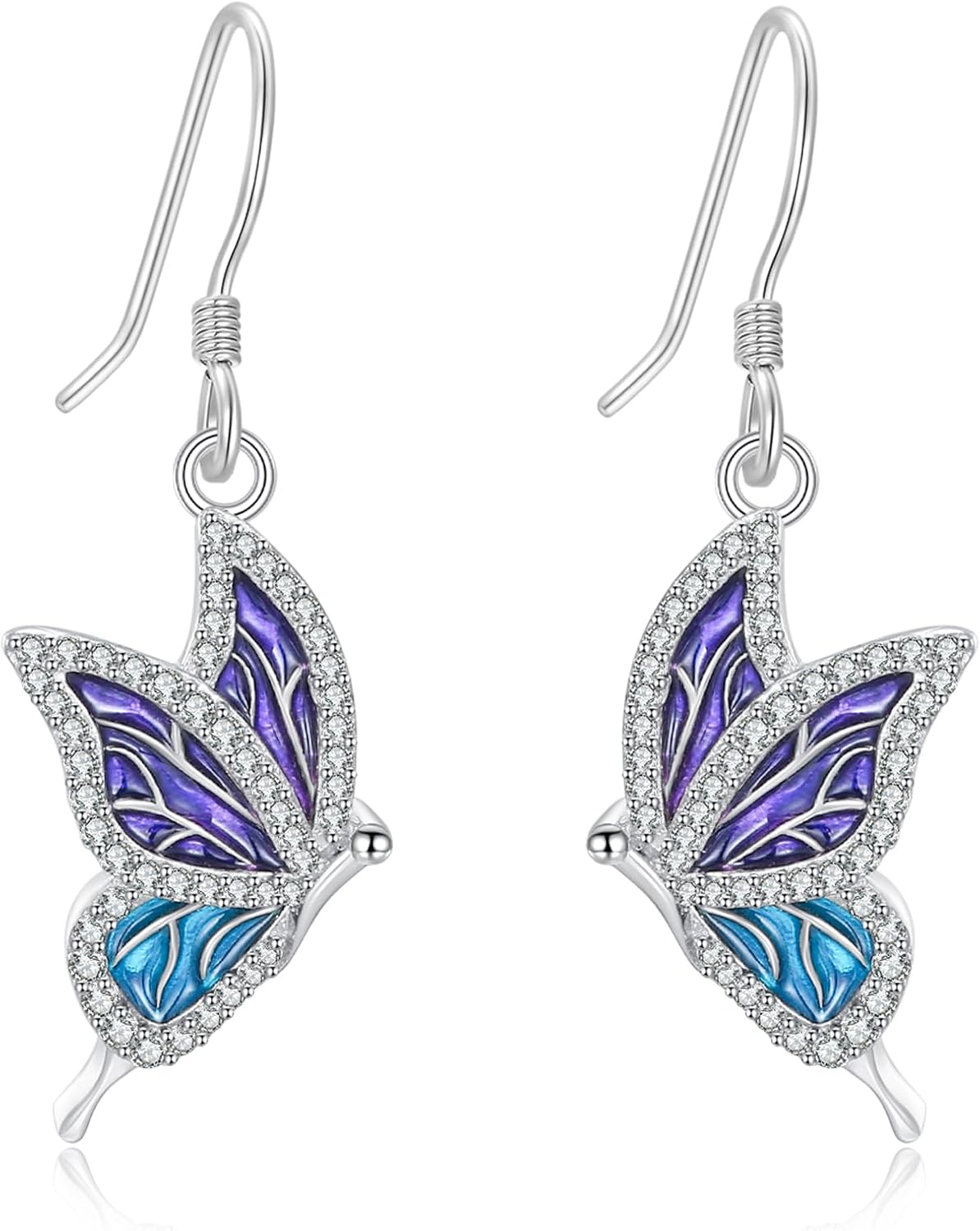 Butterfly Dangle Earrings 925 Sterling Silver Small Enamel Dripping Oil Butterflies Leverback Earring for Sensitive Ears Jewelry Mother Day for Women Girlfriend