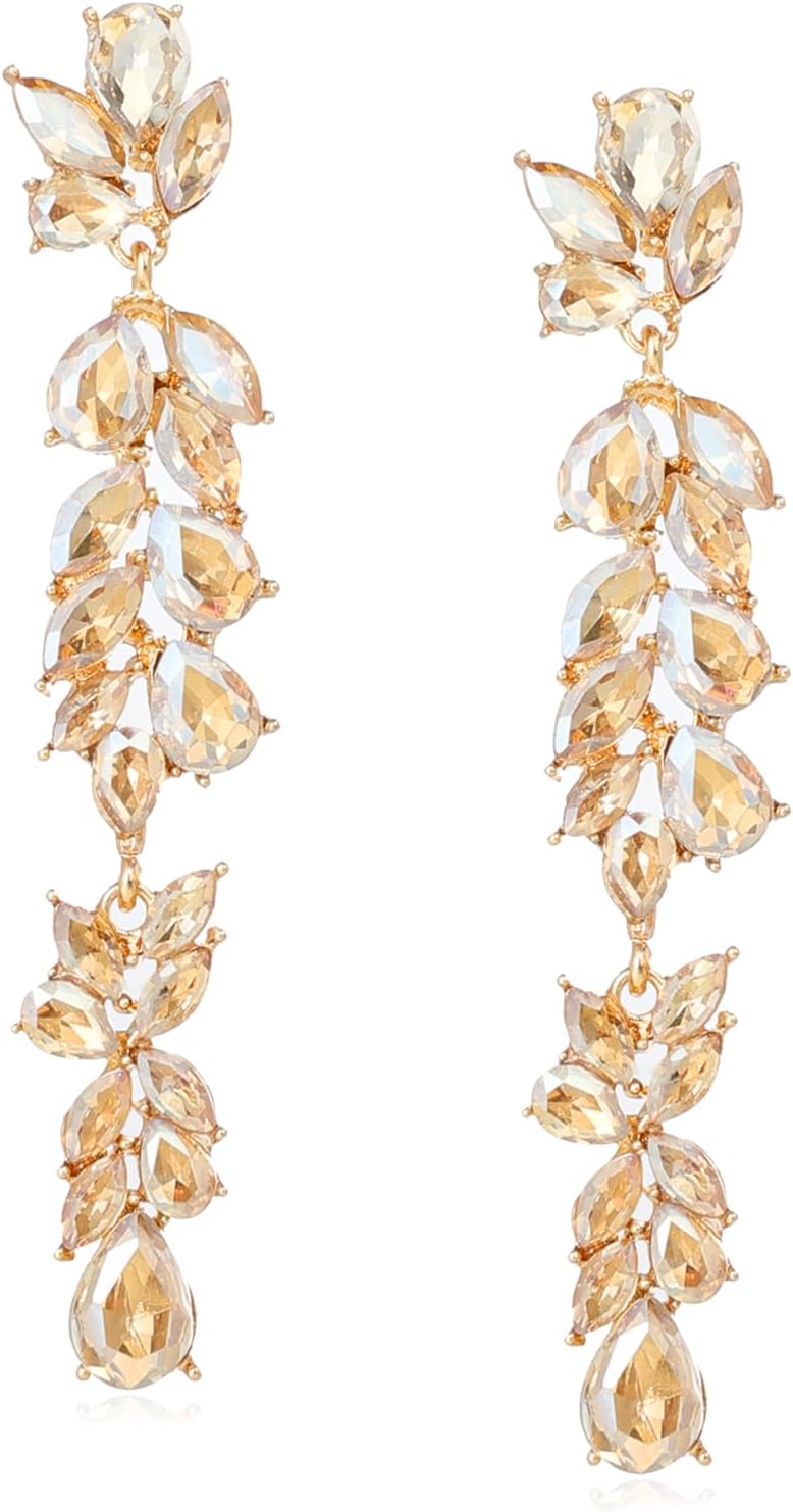 Long Rhinestone Dangle Earrings Sparkly Crystal Teardrop Dangling Earrings for Women Wedding Brides Prom Jewelry