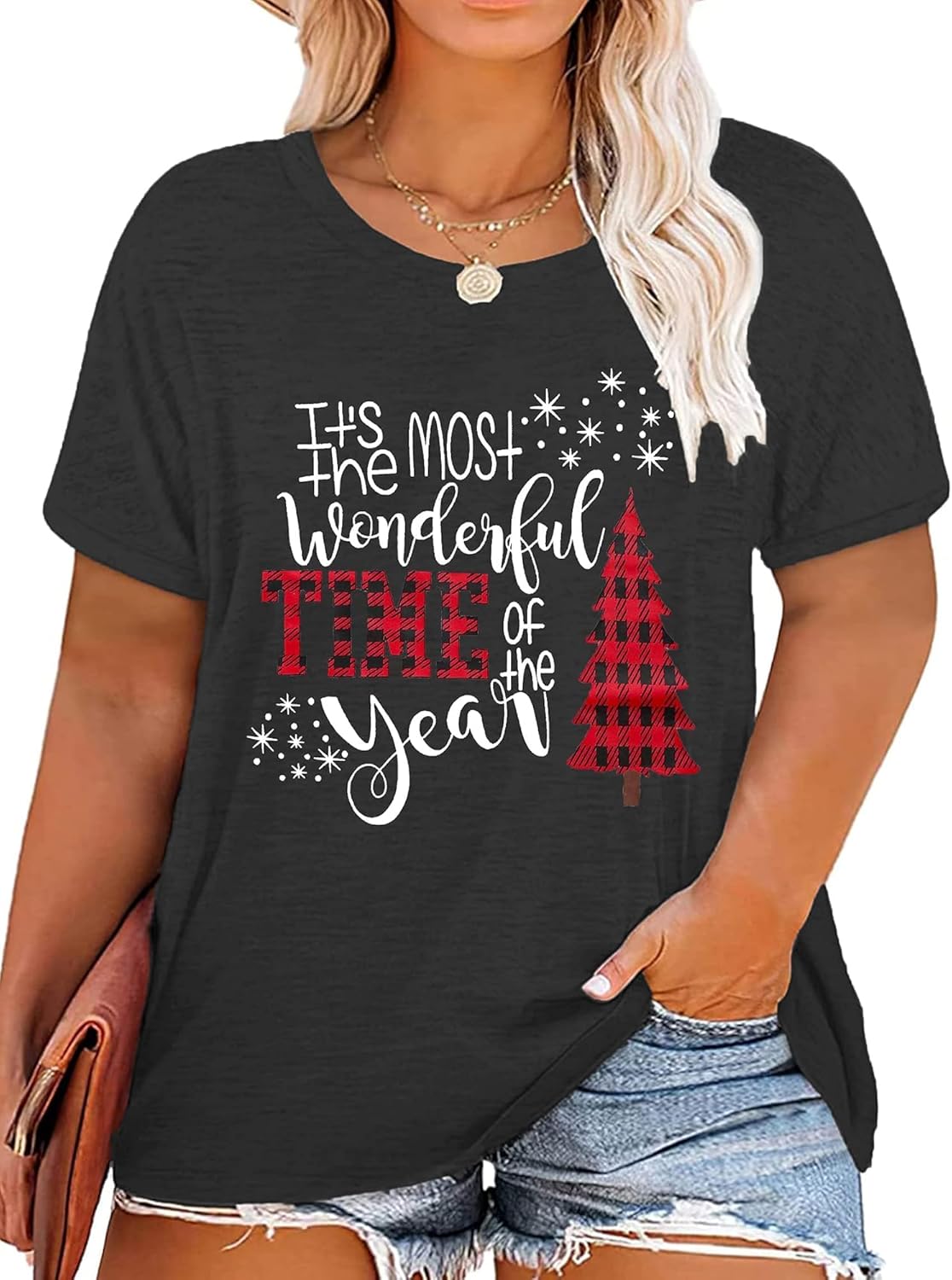 Plus-Size Christmas Shirts Women Merry Christmas Leopard Plaid Tree Print Shirt Holiday Tops Xmas Tee